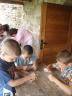 Szombaton reggel Emese néni a honfoglalás koráról mesélt, majd őseink ötvösművészetét próbáltuk felidézni: palmettás korongot kopácsoltunk.