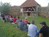 Ódon padokban vadonatúj gyereksereg. Kató Béla főtiszteletű úr az illyefalvi vár történetéről mesél.